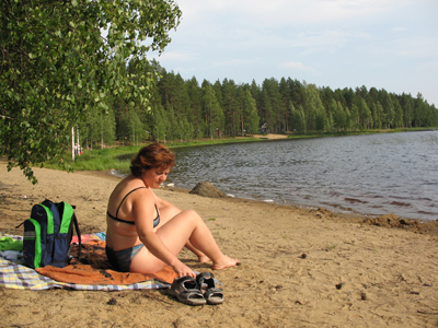 Po uradnem treningu sva se z Anjo šla kopat v bližnje, po besedah domačinov, drugo najčistejše jezero na Finskem. Res je bilo čisto, vendar preden se je jezero poglobilo, si lahko prehodil skoraj 200 m. Zato pa je bila voda ob vročem vremenu okoli 30 stopinj Celzija dovolj topla, da kopalcev ni manjkalo. To je bila dobra sprostitev pred uradnim pričetkom Svetovnega prvenstva. Še istega večera, oziroma dne, sonce skoraj ni zahajalo, smo prisostvovali svečani otvoritvi Svetovnih prvenstev v precizni orientaciji in v orientaciji z gorskimi kolesi.