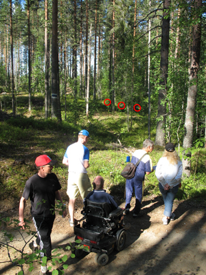 Naslednji dan sva s prvim jutranjim trajektom prispela v Helsinke. Po nekaj hitrih ogledih nekaterih znamenitosti sva bila že v gozdu. Odločil sem se, da bi bilo predvsem za Anjo, ki je bila tokrat prvič v Skandinaviji, zelo pomembno, da bi se spoznala značilnostmi skandinavskih terenov. V Helsinkih je spoznala nenavadne skalnate plošče, delno pokrite z lišaji, ki poleg borovničevja v glavnem pokrivajo gozdna tla. Naslednji trening je bil v kraju Tuusula, predmestju Helsinkov. Tam sva spoznala povsem drugačen gozd, kjer ni bilo skal, je pa karta bila v pravem merilu 1 : 5000 in s pravo ekvidistanco 2,5 metra. Tu sva za razliko od helsinške karte dobila boljši občutek za razdalje in višine. V bližnji Keravi sva opravila še zadnji trening. Teren je bil primeren za pripravo na časovno kontrolo 2. dne Svetovnega prvenstva. Za Svetovno prvenstvo sem si že v naprej zamislil možne lokacije tekmovalnih centrov in možne proge. Ob predvidevanju, da bi bila ena časovna točka pred štartom in druga na koncu, za ciljem, sem časovno kontrolo predvidel na skalnatih skokih. Skalnate skoke sva na treningu v Keravi lahko v miru proučila. Poleg tega sva na razgibanem terenu določala smeri do posameznih kamnov in reliefnih detajlov, na odprtem pa ocenjevala razdalje. Kasneje se je vse skupaj izkazalo za zelo koristno.